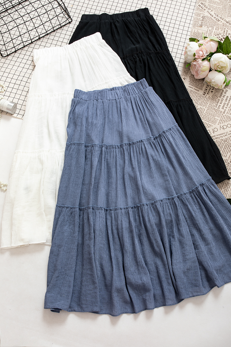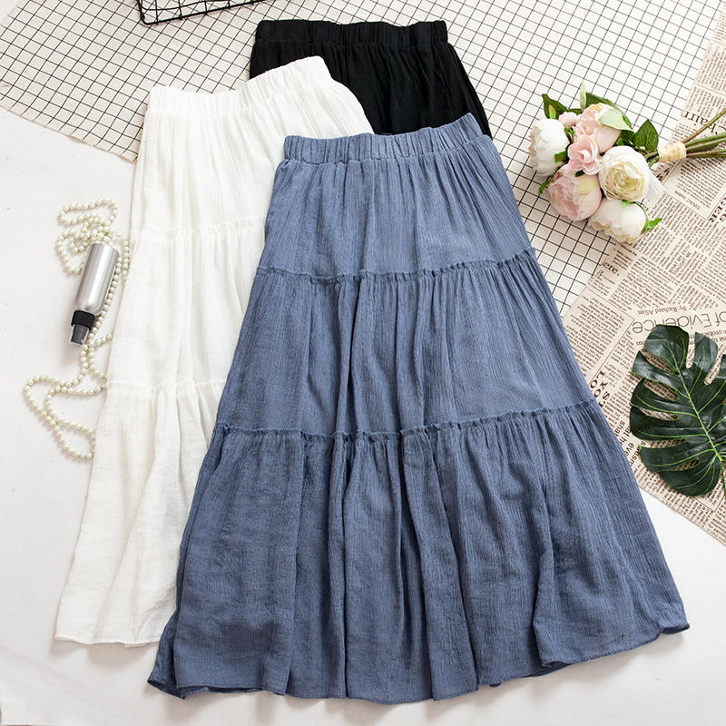 Korean New Summer High Waist Solid Blue/Black/White Skirts Vintage A-line Student Casual Skirt Elegant Fashion Mujer Faldas
