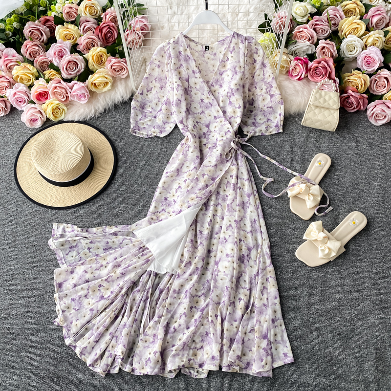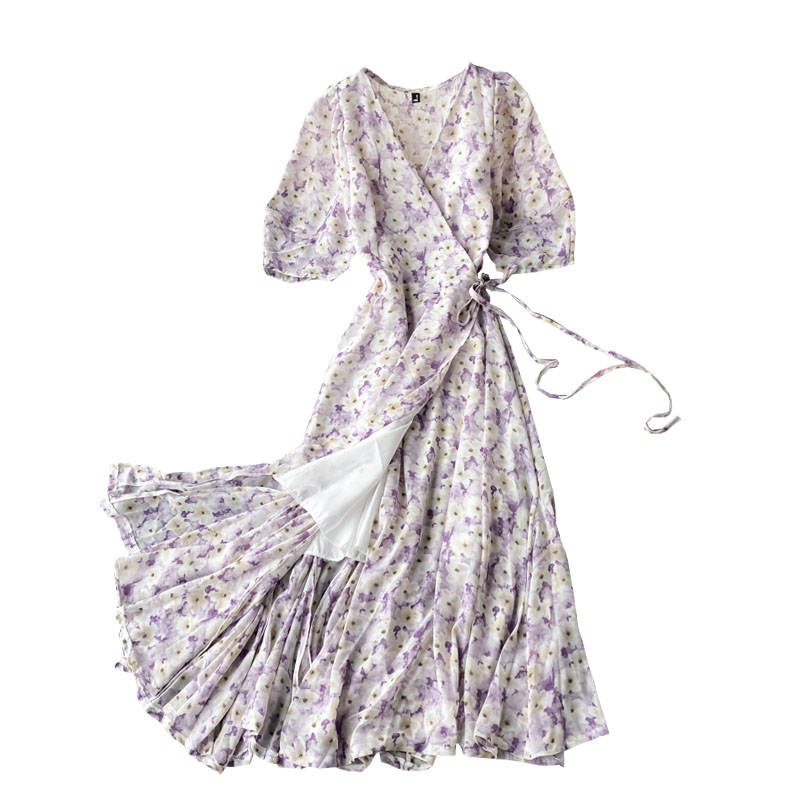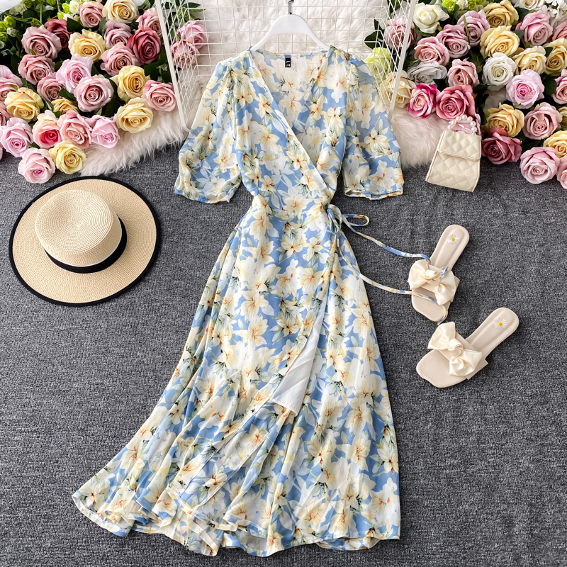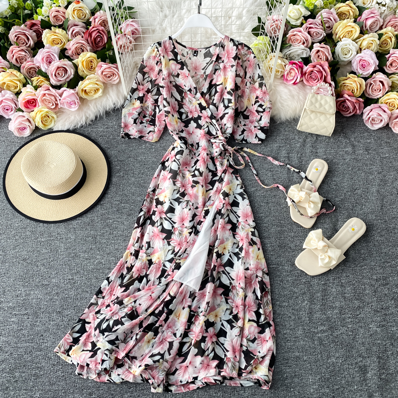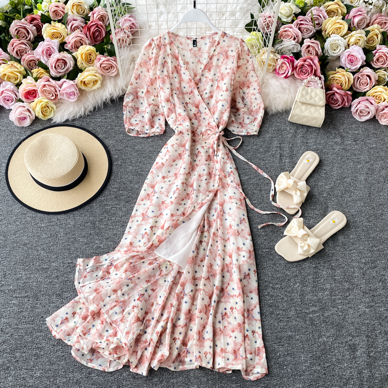 Bohemian Floral Chiffon Dress Women Summer Bohemian Flower Print Holiday Beach Midi Dresses Elegant Vestido New Robe Mujer