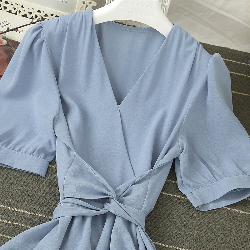 Summer Female Irregular Dress Elegant Sexy V-neck High Waist Short Sleeve Bandage Dresses Women Casual Vestidos New Fashion